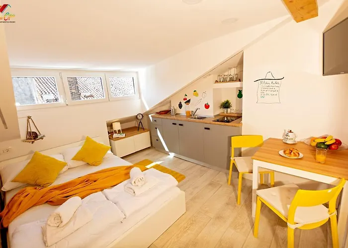 Apartments Opa Opa sind eine moderne Unterkunft im Herzen von Rijeka, perfekt geeignet für Familien oder Reisende, die die Stadt erkunden möchten. Die Apartments sind klimatisiert und bieten kostenfreies WLAN sowie einen wunderschönen Blick auf die Stadt. Die Lage ist ideal, um das kroatische Nationaltheater und andere lokale Sehenswürdigkeiten zu erkunden, die bequem zu Fuß zu erreichen sind. Die voll ausgestatteten Küchen ermöglichen Selbstversorgung, während die Nähe zu Restaurant- und Cafébereichen eine Vielzahl von gastronomischen Auswahl bietet. Strände sind in naher Entfernung und für zusätzliche Bequemlichkeit stehen öffentliche Verkehrsmittel bereit.
