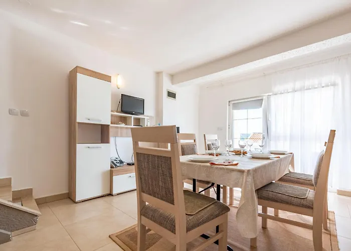 Apartments Andrea, nur 300 m vom Strand Čatare entfernt, bieten modernen Komfort mit kostenlosen Grillmöglichkeiten. Die großen Terrassen ermöglichen es den Gästen, die Aussicht zu genießen. Das Apartment ist ideal gelegen für Aktivitäten wie Windsurfen oder Tauchen. Weitere Annehmlichkeiten sind kostenloses WLAN und ein eigener Garten. Der nächste Flughafen ist 87 km entfernt und gut angebunden.
