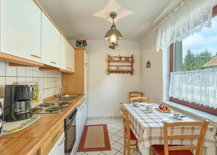 Die FeWo mit Balkon, Zimmermann ist eine charmante Ferienwohnung, die Ruhe und Komfort in Strasen vereint. Mit einem Balkon mit Blick auf den Garten bietet dieses Apartment einen perfekten Rückzugsort für Natur- und Sportliebhaber. Geschickter Zugang zu Wassersportaktivitäten ermöglicht es den Gästen, das Die besten aus ihrer Zeit am Ellbogensee herauszuholen. Die Nähe zu Naturpfaden lädt zu Erkundungen der malerischen Umgebung ein. Perfekt für Gruppen, bietet die Wohnung ausreichend Platz und hat eine voll ausgestattete Küche für ein gemütliches Kochen.
