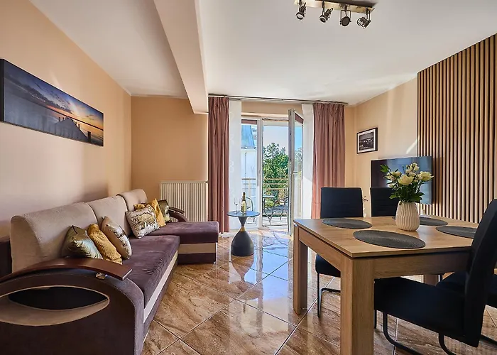 Die Apartamenty Promenada - Visitopl bietet eine ausgezeichnete Lage in Swinemünde, nur wenige Schritte von der Strandpromenade entfernt. Die Apartments sind familienfreundlich eingerichtet, mit einer voll ausgestatteten Küchenzeile und einem Balkon. Dank kostenlosem WLAN und kostenfreien Parkplätzen sind die Apartments bequem für Erkundungen der Umgebung. In der Nähe gibt es zahlreiche Freizeiteinrichtungen vom Schwimmbad bis zum Spielplatz.