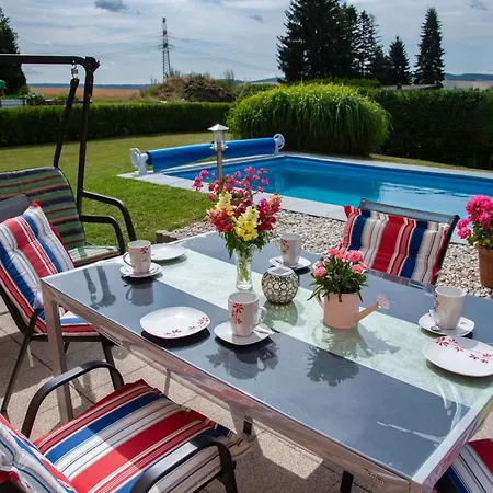 Das Ferienhaus Lenkersdorf bietet eine idyllische Unterkunft mit eigenem Pool und Gartenblick, etwa 24 km vom Sachsenring entfernt. Ausgestattet mit 2 Schlafzimmern und einer gemütlichen Wohnküche, ist es ideal für Familien und Freunde. Die Nähe zur Natur und Wanderwegen macht es perfekt für einen aktiven Urlaub. Gäste können auch den saisonal betriebenen Außenpool nutzen und einen entspannenden Tag auf der Veranda verbringen.